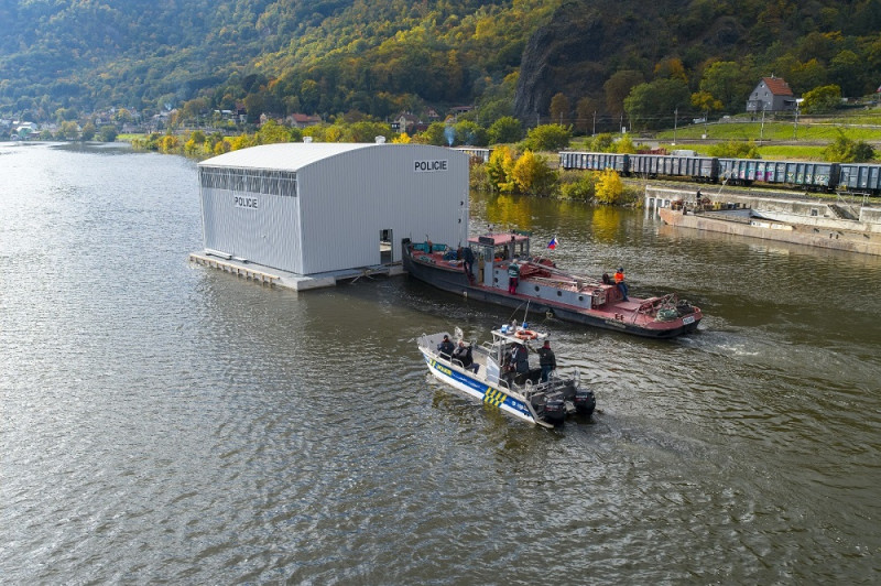Do Ústí nad Labem dorazily po Labi nové garáže pro plavidla Policie ČR