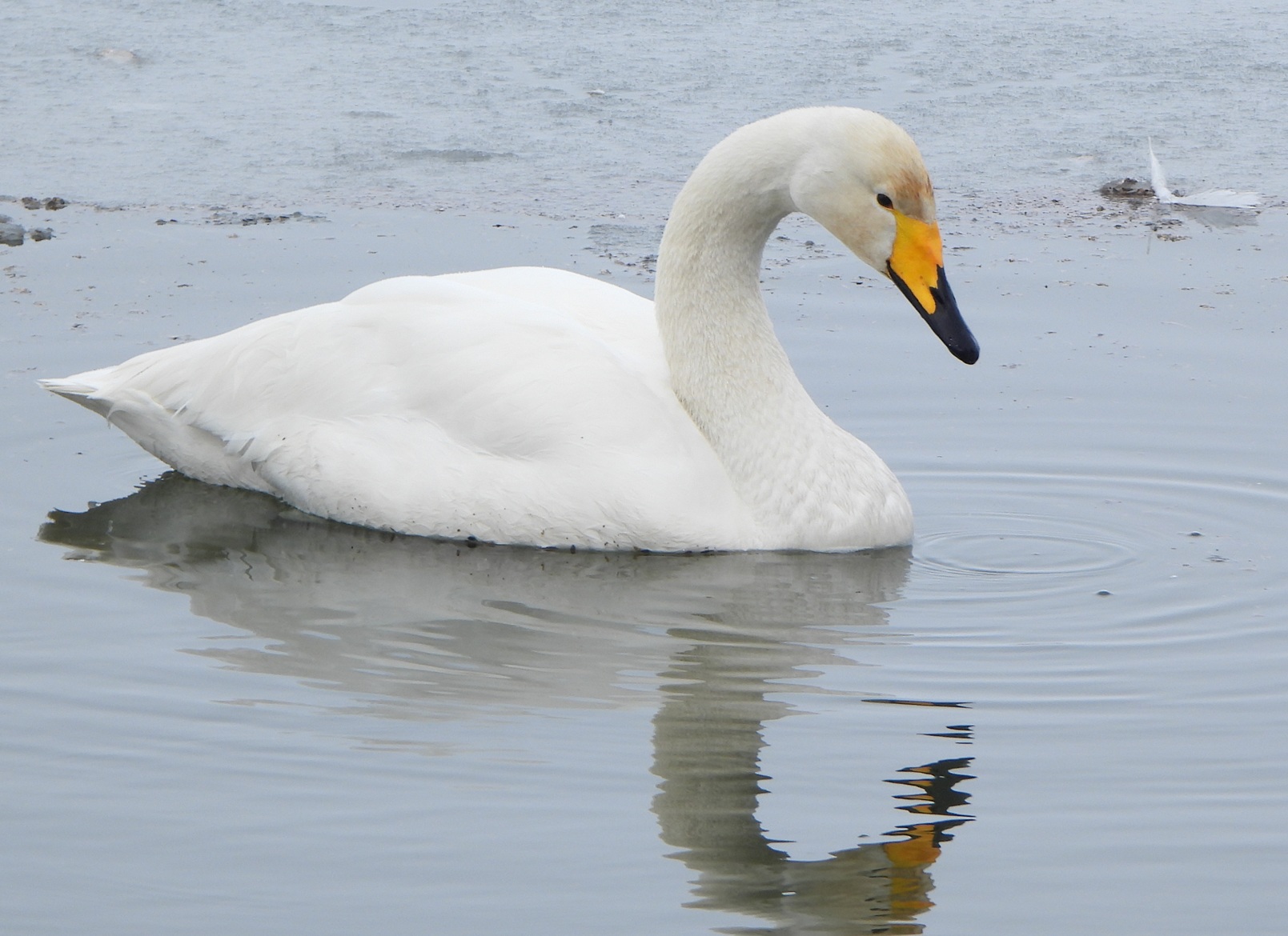 Druhým vzácným zimním hostem na Záhlinických rybnících je labuť zpěvná. Od naši labutě velké se pozná podle žlutě zbarveného zobáku. V zimě se u nás objevuje, ale nepravidelně a každé její pozorování se dá považovat za výjimečné.