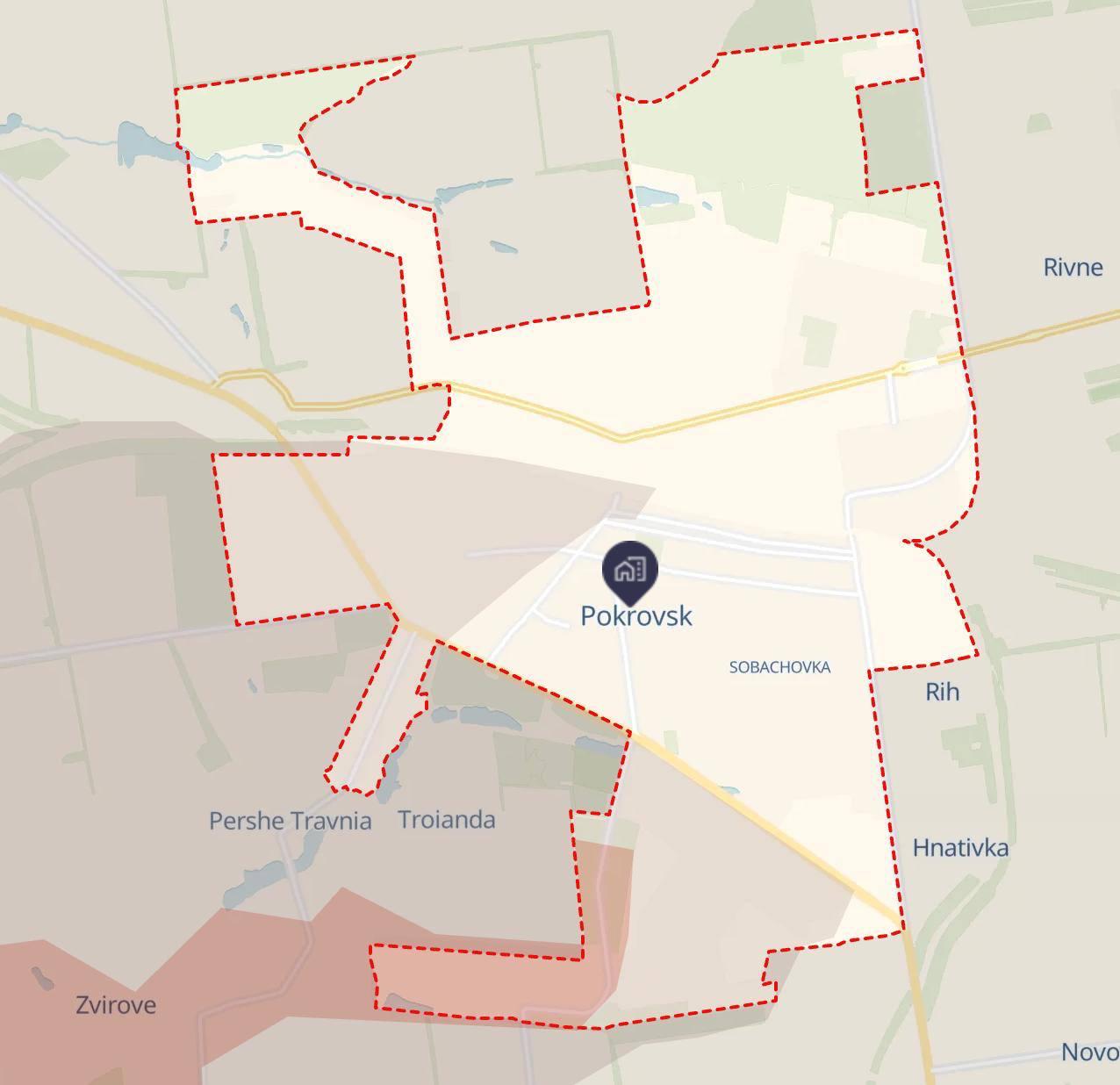 Na mapě z ukrajinské veřejné skupiny je čtvrť Sobačevka v Pokrovsku označena jako pod ukrajinskou kontrolou, ačkoli vojáci ukrajinských ozbrojených sil tvrdí, že je téměř kompletně dobyta . Pokud je to pravda, pak i podle konzervativních odhadů hnutí Deep State šedá zóna zahrnuje celou hlavní městskou oblast Pokrovska.