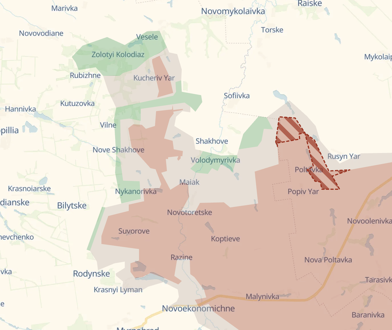 Ruská armáda postoupila ve dvou oblastech v Dněpropetrovské oblasti a také dále na jih v Záporoží, informuje Deep State.
