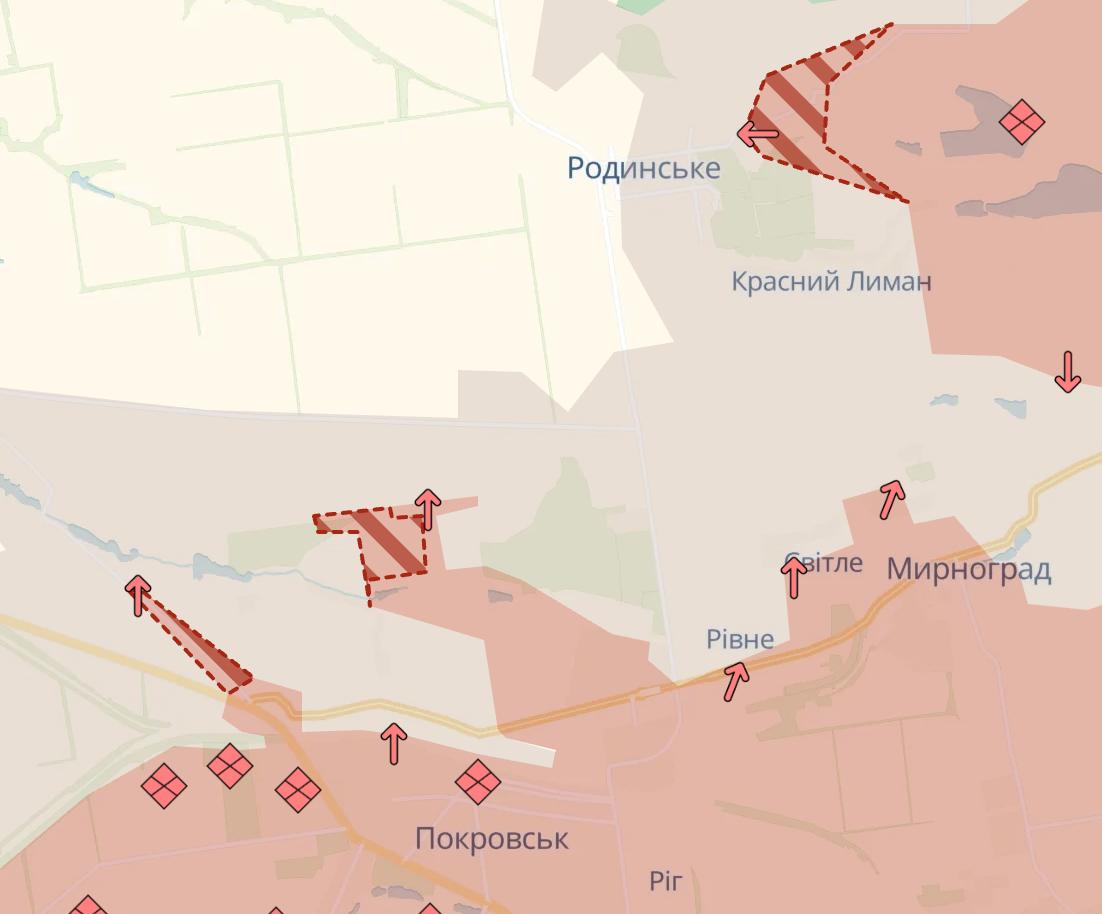 Ruská armáda opět postoupila v Pokrovsku a severně od Mirnogradu a severně od Guljajpole byla dobyta vesnice Rybnoje, informuje Deep State.