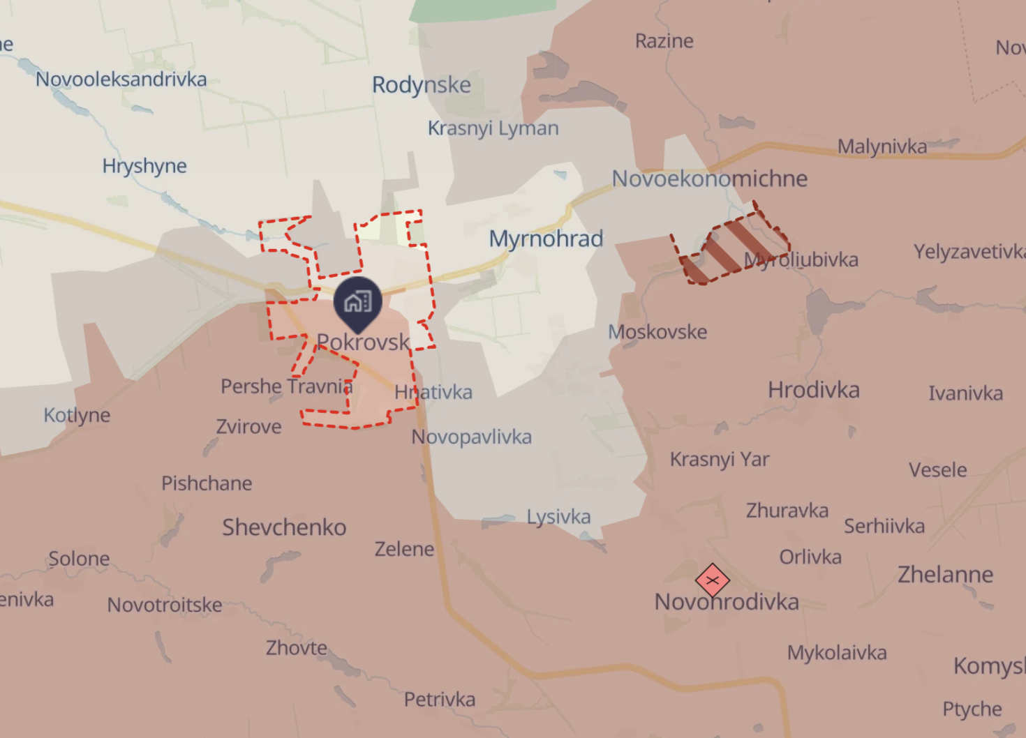 Dnešní mapa generálního štábu ukazuje, že Rusové ani nevstoupili do jižních čtvrtí Pokrovska, ačkoli ukrajinské ozbrojené síly dříve oficiálně uznaly, že ovládají pouze oblast severně od železnice – tedy severní třetinu města.